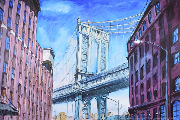 Manhattan Bridge, Downtown New York, acrylic on canvas by Dylan from 2015-17. The works are being displayed at the Modern Art Museum in Shanghai.[Photo provided to China Daily] |