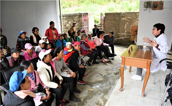 Women in Tuoding township in the northwest of Yunnan province attend a health knowledge lecture. [Photo provided to China Daily]