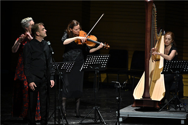 On Oct 25, Zhou Tian's musical pieces, Rhyme for Cello Solo, and Reading an Anthology of Chinese Poems, for narrator, flute, viola and harp, were performed by the Mahler Chamber Orchestra under the baton of conductor Vicente Alberola. Du's work, A Cockroach's Tarantella, was also staged during the concert.