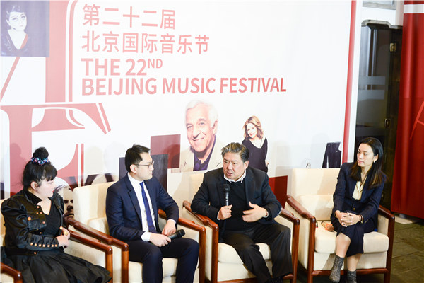 From left: Composer Du Yun, composer Zhou Tian, maestro Yu Long and artistic director of BMF, Zou Shuang. [Photo provided to China Daily] |
