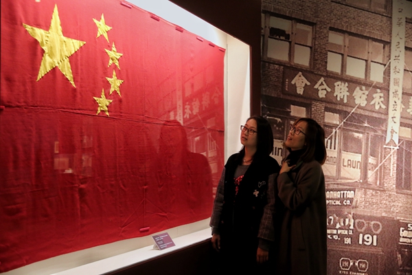 The first national flag of the People's Republic of China raised in New York by an overseas Chinese union in 1949.[Photo by Jiang Dong/China Daily] |