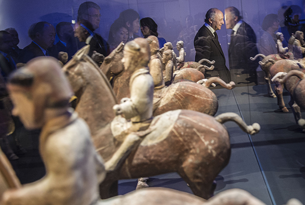 An exhibition of Chinese cultural relics from Han Dynasty (206 BC-AD 220) at the Guimet Museum in Paris in 2014. [Photo/Xinhua] |
