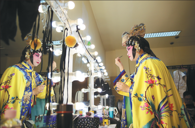 Actors prepare for a performance of Farewell My Concubine in Beijing last month. PHOTOS BY ZOU HONG / CHINA DAILY |