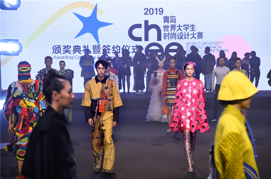 The closing ceremony of the 2019 World University Student Fashion Designing Competition is held in Qingdao, East China’s Shandong province, on Nov 9, 2019. [Photo/Xinhua]