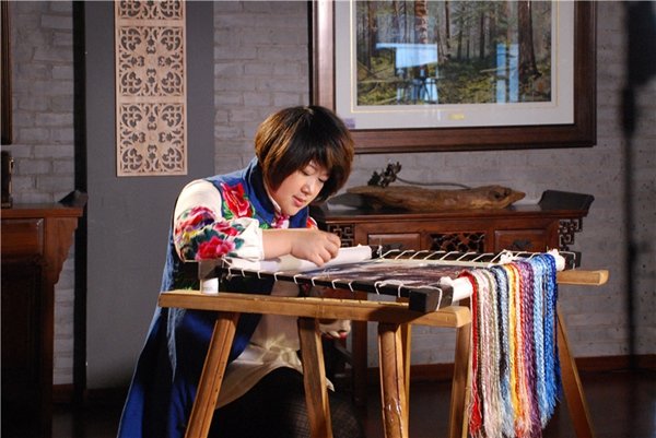 Sun Yanling works on a Manchu embroidery. [For Women of China] |