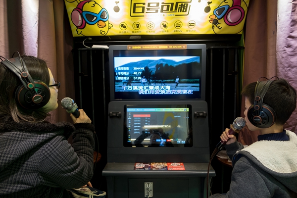 A mother and her son enjoy a karaoke session in Shanghai.[Photo provided to China Daily] |