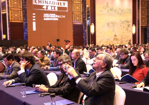 Guests gather in Bengbu, Anhui province, on Monday, to participate in the Taihu World Cultural Forum, a vehicle to deepen cultural exchanges between China and the world. [PHOTO BY ZOU HONG/CHINA DAILY] |