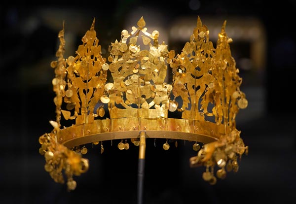 A crown (AD 25-50) is among the 231 items and sets of rare artifacts from Afghanistan on show at the Hong Kong Museum of History after traveling to 28 museums across the world. [PHOTO/CHINA NEWS SERVICE] |
