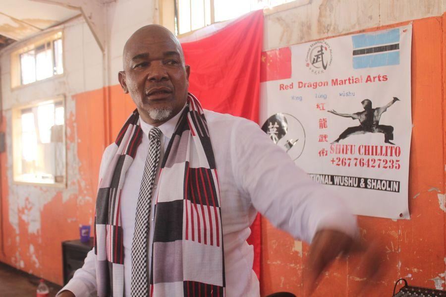 Thuto Thuto, president of Botswana All Budo Style Association speaks during the upgrading competitions of kungfu athletes in Francistown, Botswana, Nov 16, 2019. [Photo/Xinhua]