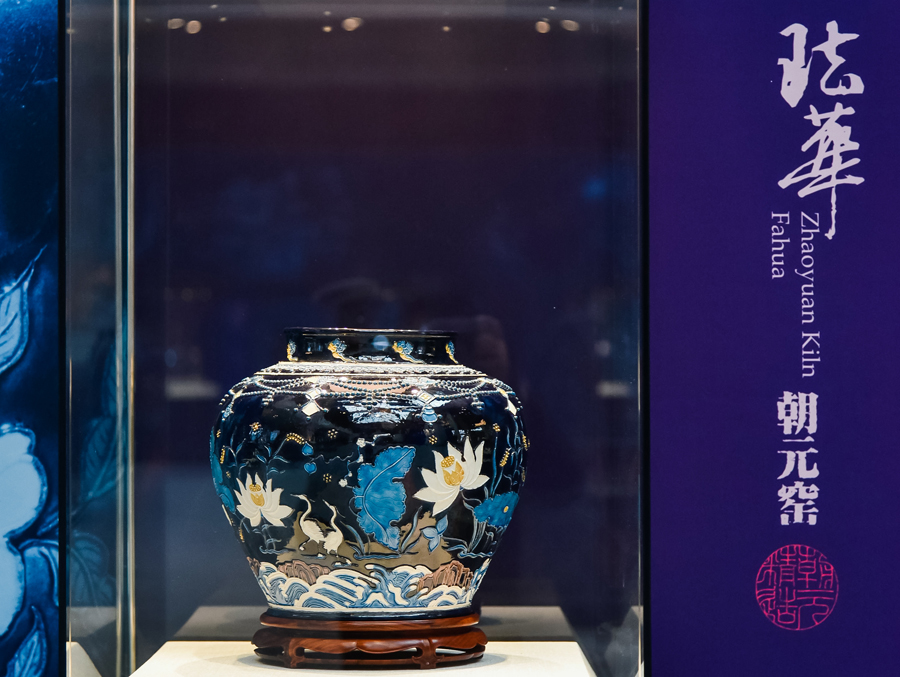 A piece of Fahua porcelain is showcased at the sixth annual conference of the Taihu World Cultural Forum in Bengbu, East China's Anhui province, on Nov 17. [Photo provided to chinadaily.com.cn]