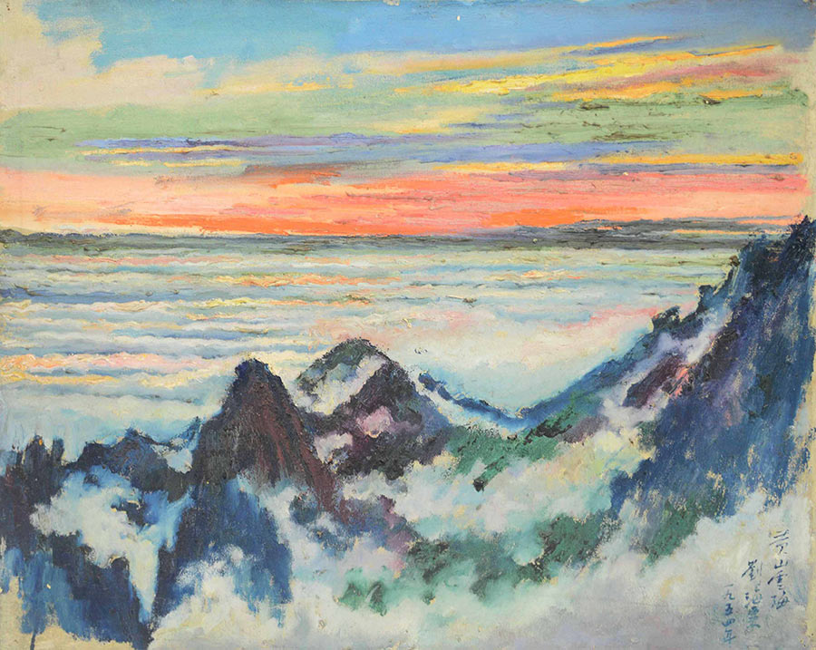 Huangshan Mountain in Clouds, a painting by Liu Haisu, is shown at Beautiful China: A World of Colorful Images at National Art Museum of China. [Photo provided to China Daily]