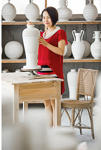 Chen Minghua works at her studio in Dehua, Southeast China's Fujian province. [For Women of China] |