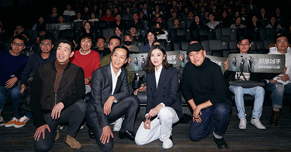 Stars promote the film The Guilty Ones at the Beijing premiere. [Photo provided to China Daily]