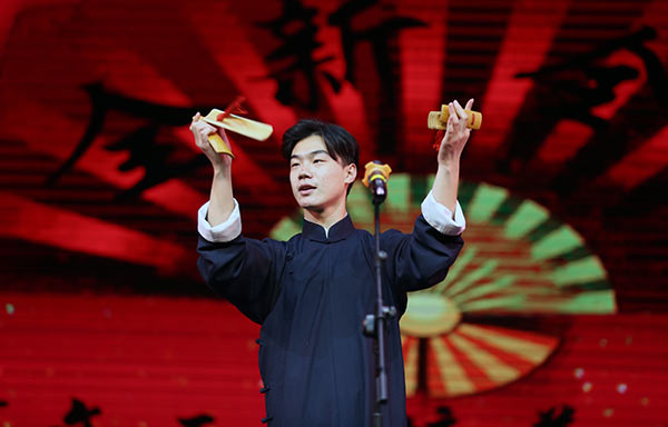 The young crosstalk performers gave performances of traditional crosstalk pieces as well as original works, which cater to younger audiences. It is part of the art troupe's effort to upgrade the traditional comedy form and promote it among younger generations.