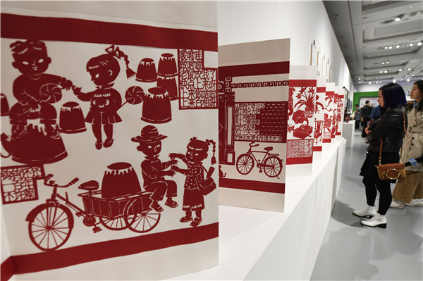 Lacquer ware, dough sculptures and paper-cuts are among objects of traditional crafts on show at an art and craft biennial in Hangzhou, Zhejiang province, earlier this month. [Photo by Li Zhong/For China Daily] |