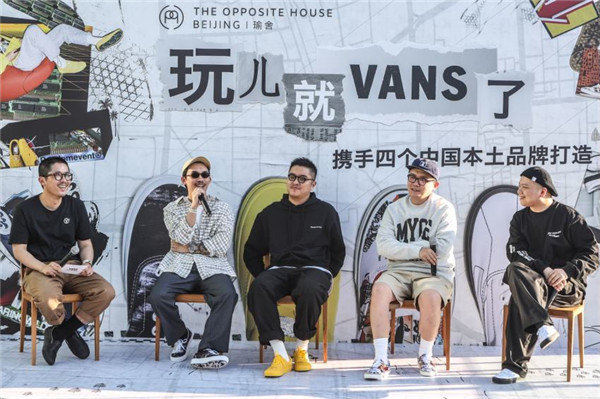 Four local brands' founders (from right) Liang Dong, Zhao Meng, Hong Yang and Cao Yang attend a launch with Alvin Chen from Vans. [Photo provided to China Daily] |