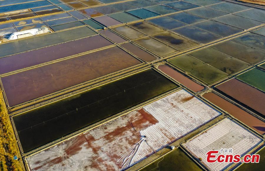 Aerial view of salt fields in Weihai, East China's Shandong