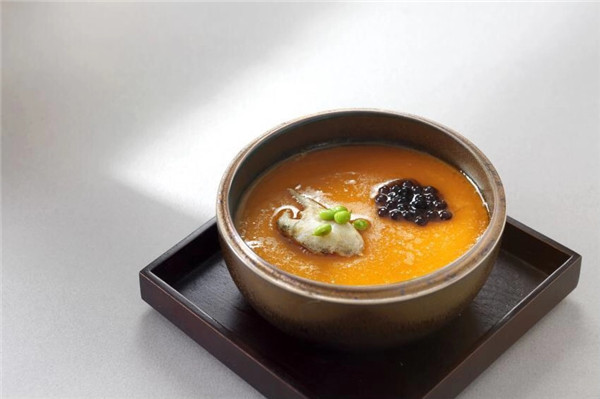 Steamed egg white pudding with crab claw meat from East restaurant. [Photo provided to China Daily] |