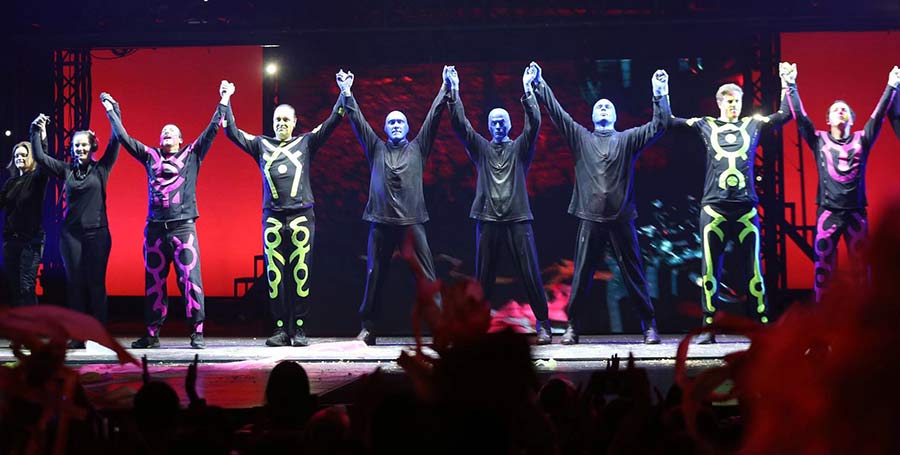 Award-winning global theatrical production Blue Man Group is touring nine Chinese cities in 11 weeks, including Nanjing of Jiangsu province, Xi'an of Shaanxi province, Shanghai and Guangzhou. [Photo provided to China Daily]