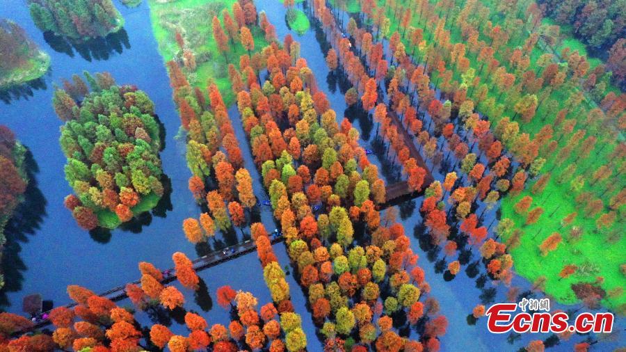 Photo taken on November 30, 2019 shows pond cypress at a park in Qingpu district, Shanghai. [Photo/China News Service]