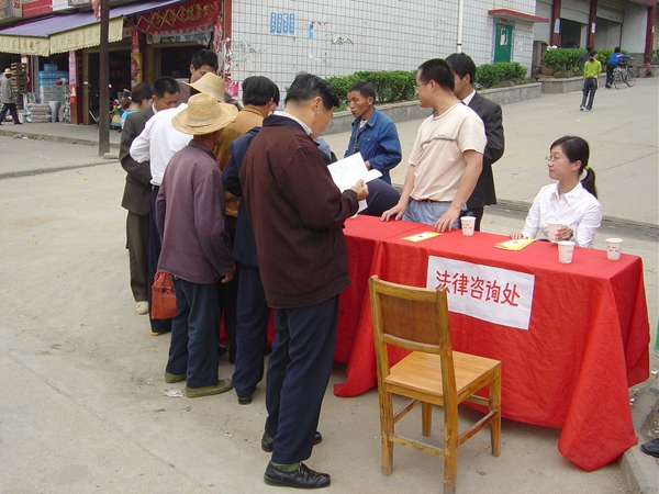 Law school students of the university help members of the local community with legal advice.[Photo provided to China Daily] |