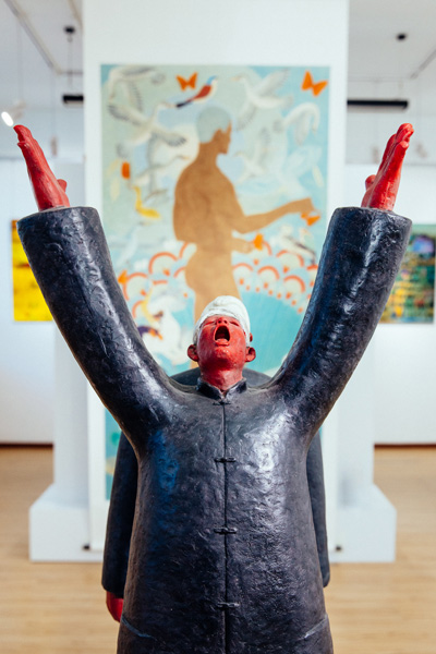 Chinese sculptor Liu Ruowang’s signature sculpture series The East is Red is on show at Fraternity, a group exhibition held at Art Des Gallery in Beijing. [Photo by Pierre Alivon/provided to chinadaily.com.cn]