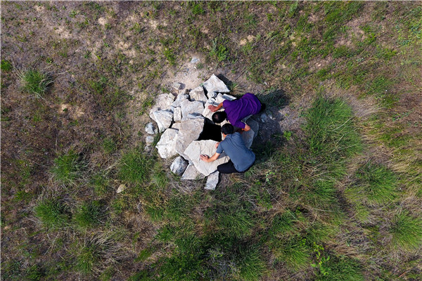 Villagers check water storage in a dry well. [Photo/Xinhua] |