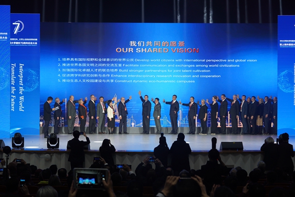 Scholars and officials from around the world at a seminar during the 70th anniversary celebrations at the university.[Photo by Gao Erqiang/China Daily] |