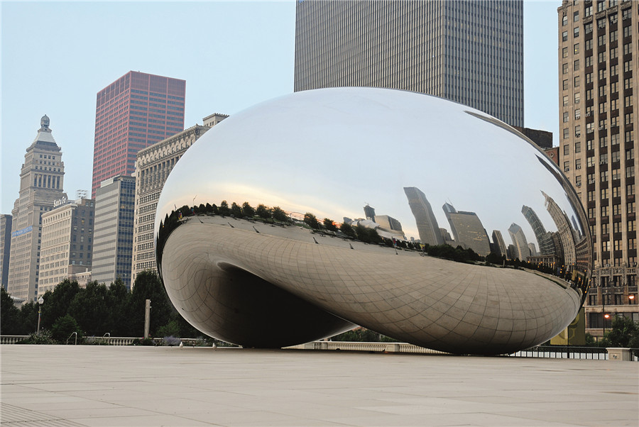Cloud Gate, aka The Bean, one of British artist Anish Kapoor's public sculptures, is on permanent view at Millennium Park in Chicago, the US. [Photo provided to chinadaily.com.cn] |