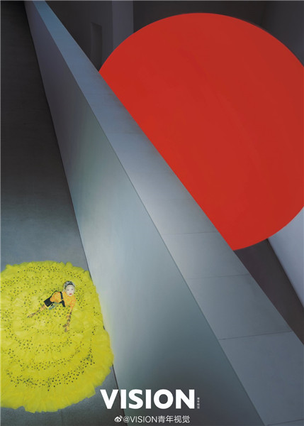 A-list Chinese actress Zhou Xun poses beside one of Anish Kapoor's artworks on display at the CAFA Art Museum in Beijing for the fashion magazine Vision. [Photo provided to chinadaily.com.cn] |