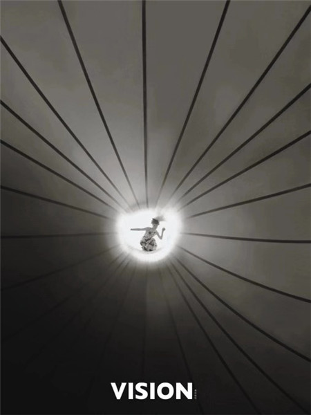A-list Chinese actress Zhou Xun poses beside one of Anish Kapoor's artworks on display at the CAFA Art Museum in Beijing for the fashion magazine Vision. [Photo provided to chinadaily.com.cn]