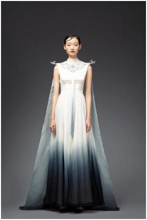 A silk gown designed by Chen Jiaoxi. [Photo provided to China Daily]