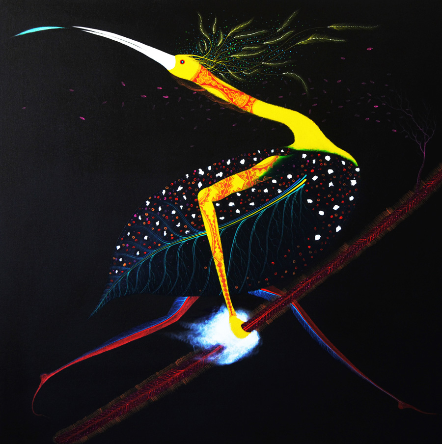 Viewing flashily-attired anthropomorphic animals in Yahuarcani's paintings themed after When Animals were Persons, visitors cannot help but wonder what beautiful myths and spirit could dominate the physical and spiritual universe of the Amazon.