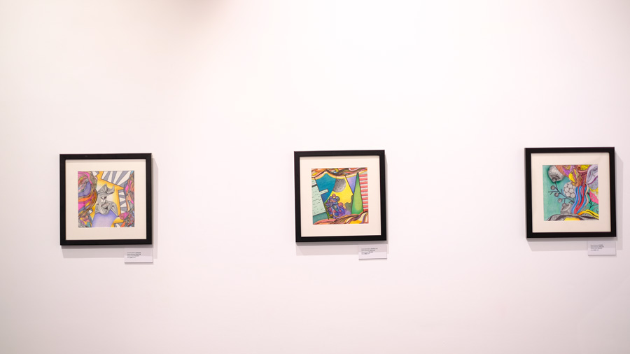 Paintings by the Fifth Element, a Peruvian contemporary art group, are on show at The Other Land, an exhibition held at the Cervantes Institute in Beijing. [Photo by Yang Xiaoyu/chinadaily.com.cn]