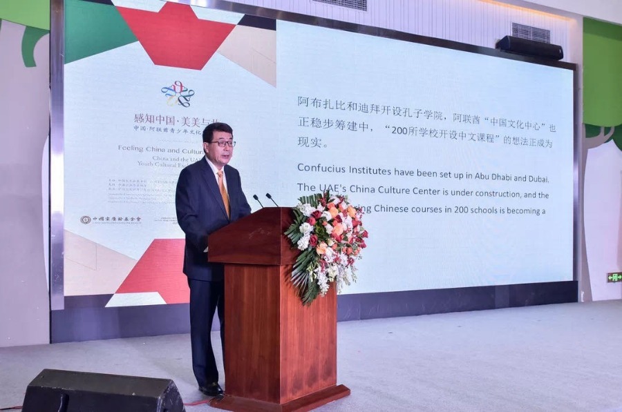 Jing Dunquan, vice-chairman of the China Soong Ching Ling Foundation, delivers a speech at the opening ceremony of the China and the UAE Youth Cultural Exchange Week, Dec 16, 2019.[Photo provided to chinadaily.com.cn]