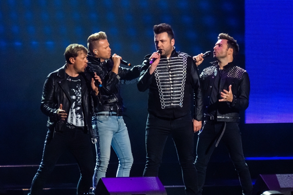 The band sings during a concert, as part of The Twenty Tour celebrating its 20th anniversary and reunion, in Beijing on Aug 13.[Photo provided to China Daily] |