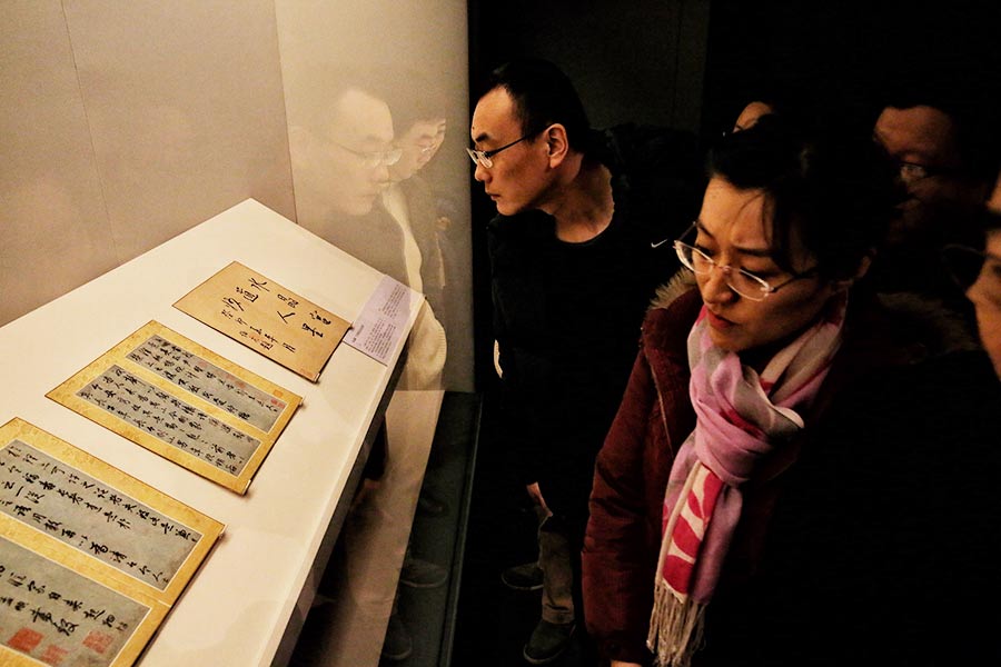 Calligrahpy by master artist Zhao Mengfu on show. [Photo by Jiang Dong/China Daily]