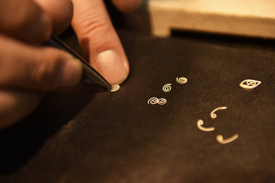 Dong Ruijing works on a piece of filigree inlay artwork in Beijing, capital of China, Dec 17, 2019. Filigree inlay is crowned as one of the eight traditional arts and crafts of Beijing. With gold or silver as raw material, filigree inlay craftsmen apply complex techniques such as knitting and welding so as to shape metal wires into various forms. Then they create fluted patterns on the wires with techniques such as hollowing and cutting for gems to be inserted. Once a royal technique, filigree inlay is listed as one of the national intangible culture heritage. Dong Ruijing has been working on filigree inlay for over 30 years. His artwork have been recognized and rewarded in various competitions and expo committees. In recent years, Dong has been promoting and innovating this technique so that it can be known and favored by more people and the traditional culture be passed down.[Photo/Xinhua] |