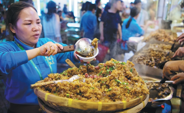Fried rice is served in the street.[Photo/Xinhua] |