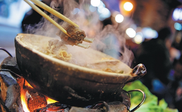 Lamb stew and barbecued prawns, both traditional foods in Macao.[Photo/Xinhua] |