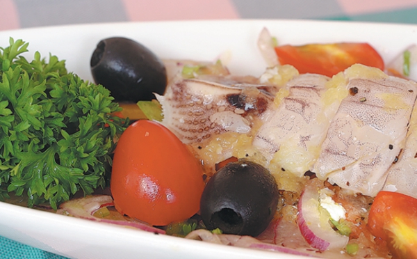 Mantis shrimp salad, a fusion food developed in the city.[Photo by Joyce Siu/China Daily] |