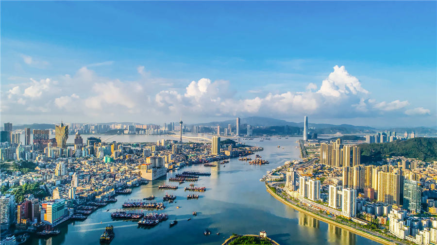 Zhuhai city and Macao, separated by a river, boom together. [Photo by Qiu Xiangquan/provided to chinadaily.com.cn]