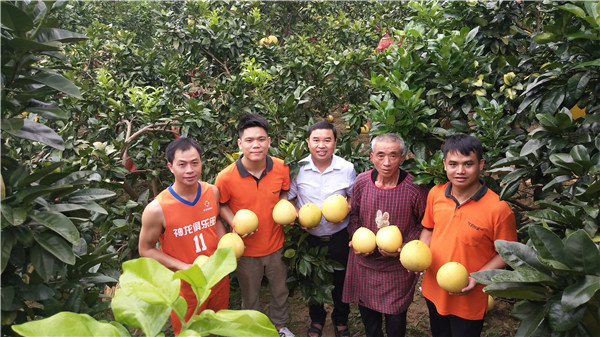 Local villagers harvest pink pomelo in Sanle village, Guangxi Zhuang autonomous region. [Photo provided to China Daily] |