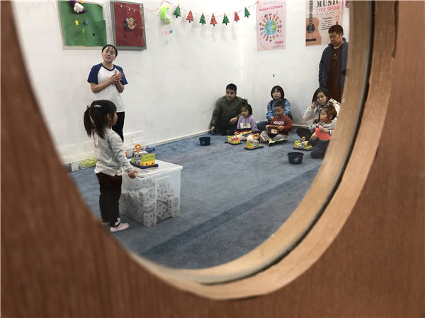 Parents and their children take part in activities together such as music classes, reading books and building things with toy bricks at the many daycare centers that are popping up all over China. [Photo by Geng Feifei/China Daily]