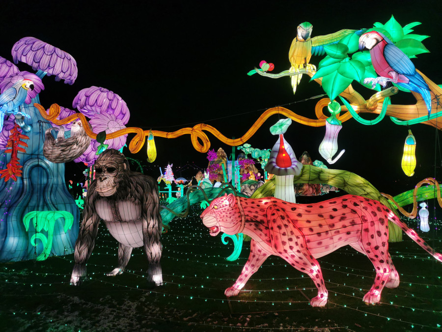 The festival features more than 23 sets of larger-than-life light art with three themes — Winter Fantasy, Wild Adventure and Sweet Dream — and light installations including an Arctic wonderland, rainforests and deserts.