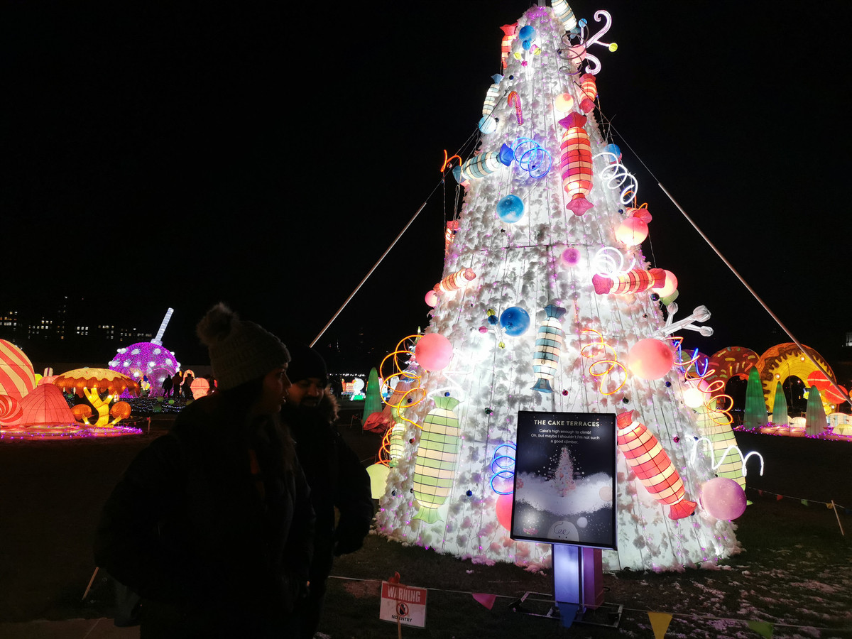 A Christmas tree with "candy" in the Sweet Dream land of the LuminoCity Festival. ZHANG YUE / CHINA DAILY