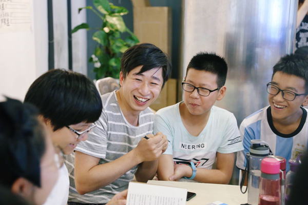 Volunteers and students attend a summer camp activity in Youwei Library. [Photo provided to China Daily] |
