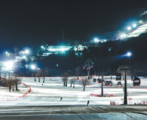 Visitors can try night skiing at Lake Songhua Resort in Jilin province. [Photo provided to China Daily] |