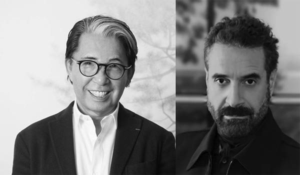China's down clothing company Bosideng collaborated with Kenzo Tanaka (left) and Ennio Capasa to give a runway show in Sanya, Hainan province. [Photo provided to China Daily]
