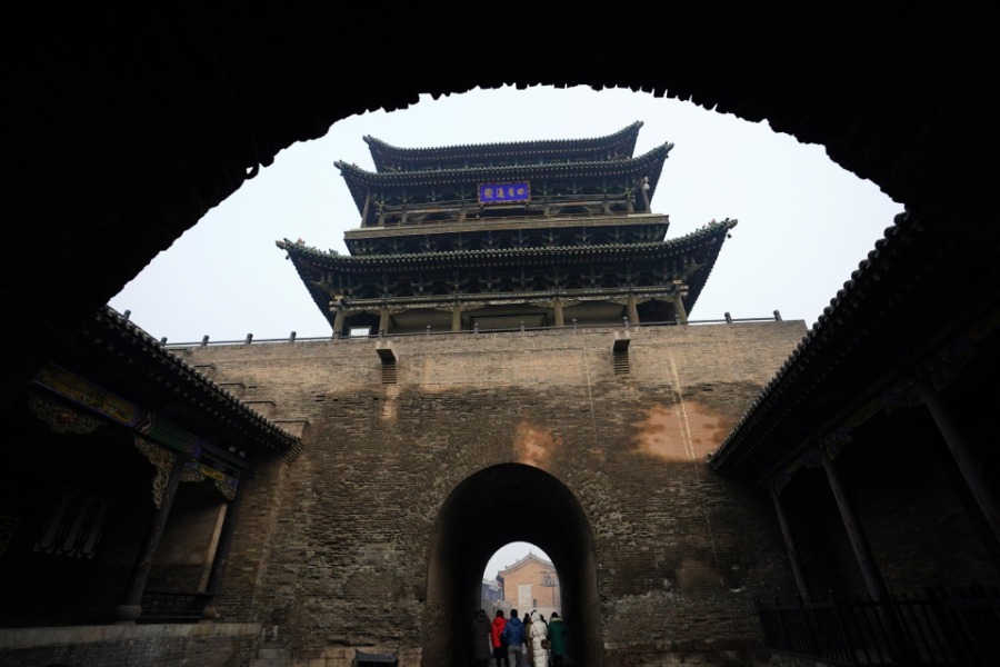 Visitors tour around Pingyao ancient city, Dec 25, 2019. Pingyao, an ancient walled city famed for its economic history as well as its well-maintained Ming and Qing layout, was named a World Heritage site by UNESCO in 1997. Located in Shanxi province just 715 kilometers southwest of Beijing, it represents the best-preserved county-level city of ancient China. Nowadays, the ancient city appeals to increasing numbers of tourists with its time-honored handicrafts, old folk traditions and historical residences.[Photo/Xinhua]
